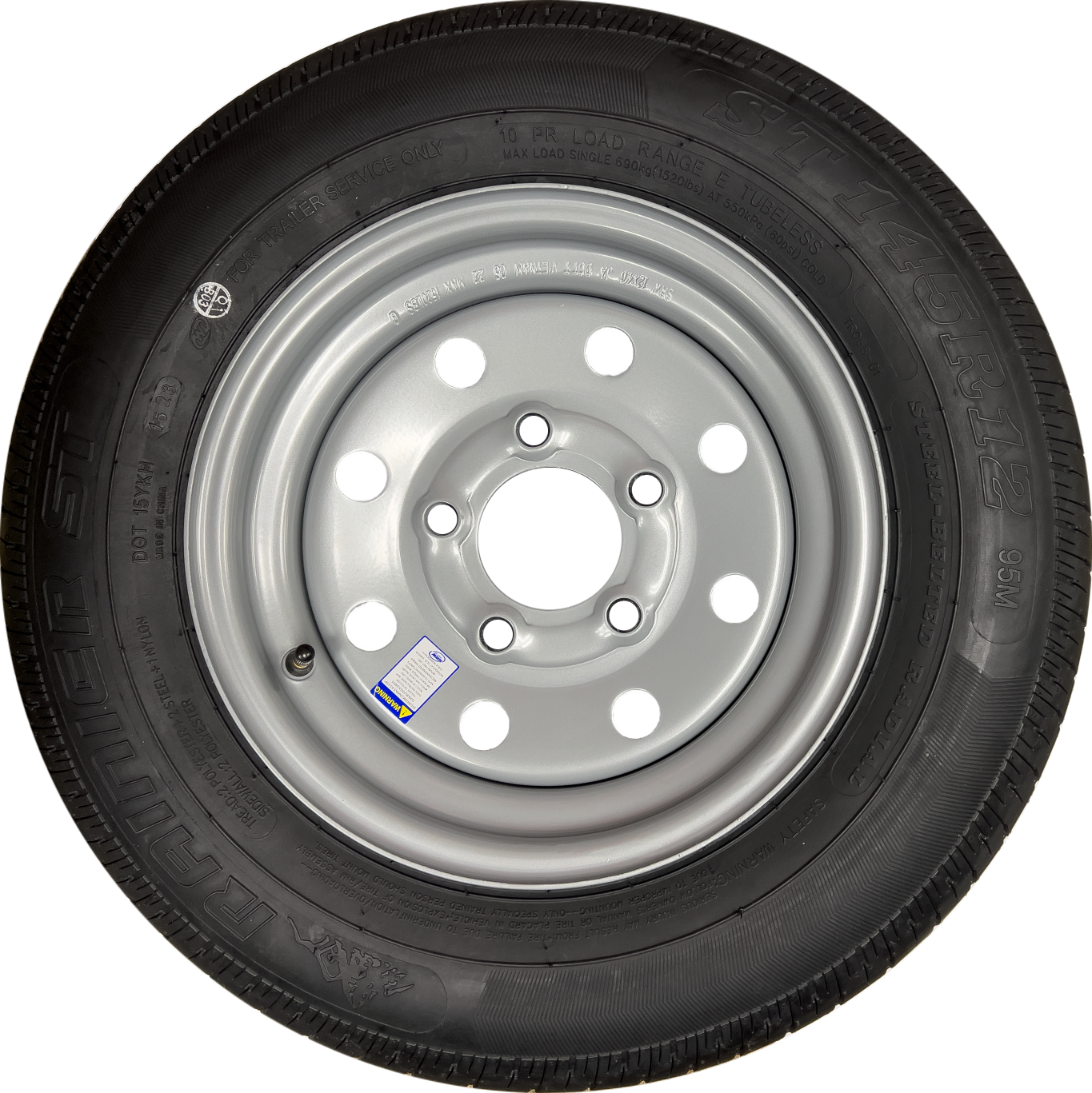 Silver Mod Steel Wheel 5x4.5 Bolt Pattern 145r12 Radial Tire 10 Ply Load Range E 1520lbs @ 80psi