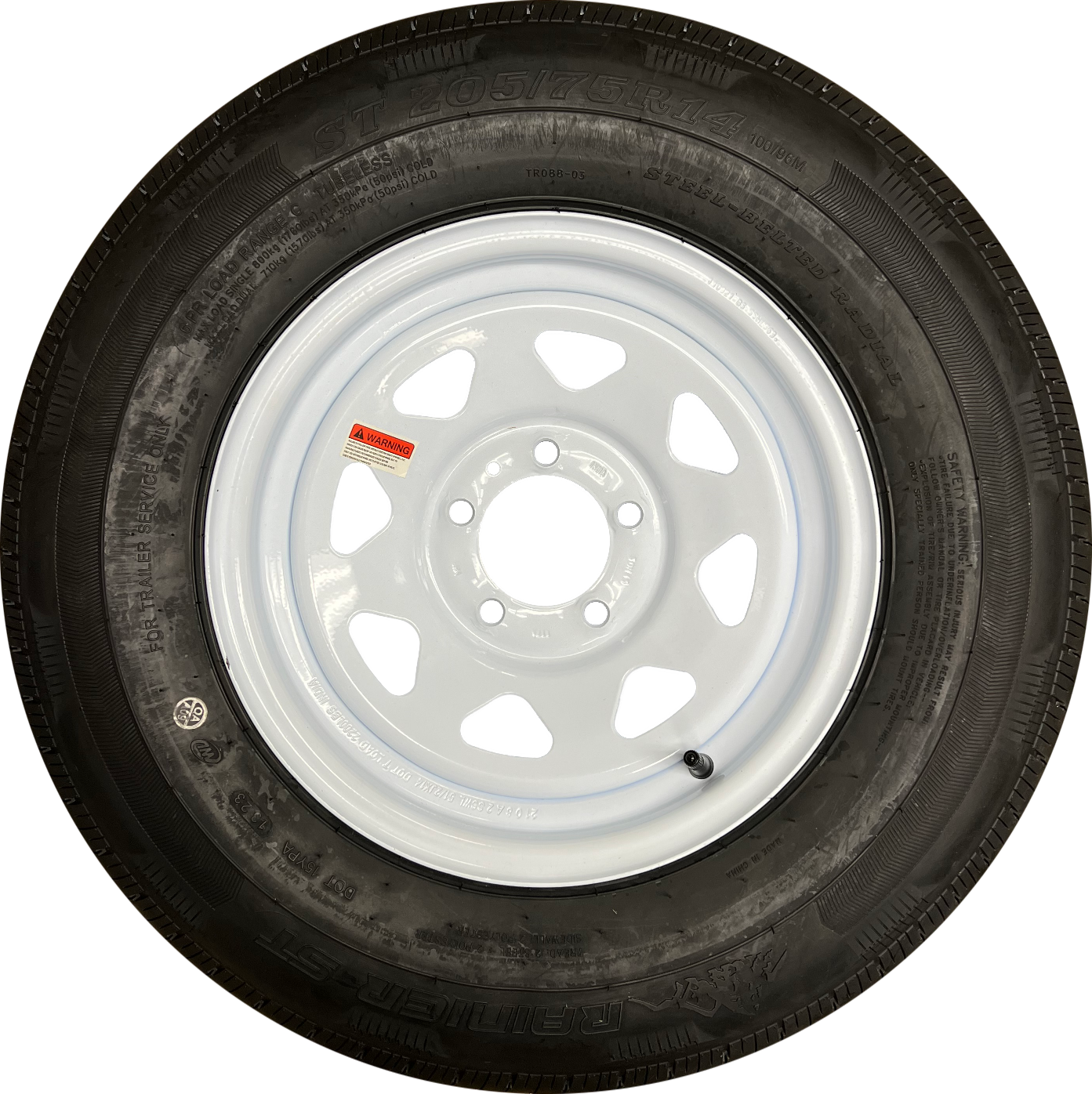 White Spoke Steel Wheel 5x4.5 Bolt Pattern 205x75x14 Radial Tire 6 Ply Load Range C 1760lbs @ 50psi